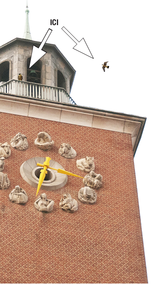 Voilà donc le sixième couple de pèlerins bruxellois, au sommet de la maison communale de Woluwé-Saint-Pierre. Le mâle est l’un des petits nés l’année passée au sommet de la Cathédrale Sainte-Gudule, l’origine de la femelle est encore inconnue….espérons une bonne nouvelle d’ici a quelques semaines!