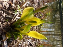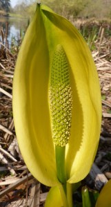 Bien caché et pourtant si surprenant, voilà le Lysichiton américain (Lysichiton americanus), une aracée aux très grandes fleurs jaune-vert (20 à 30 cm tout de même!). Prudence tout de même, cette belle originaire des marais d’Amérique du Nord est une invasive à surveiller…