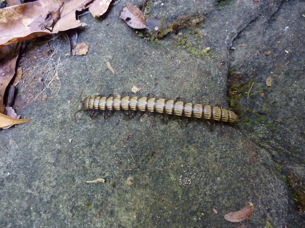 In the marshy zone, I managed to catch that 5 cm centipede. They are powerful predators of other insects, and their bite can be dangerous…but not in the case of temperate species. Don’t worry…holding it on my  hand was not risky! I would not advise to do the same with the 20-cm long one on the right, seen on Borneo 😉