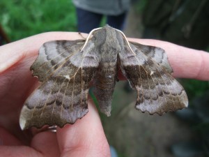 The walk really got thrilling when I discovered that big guy, sleeping on Cow Parsley (Anthriscus sylvestris). It’s a male Poplar Hawk-Moth (Laothoe populi), with a wingspan of 9 cm. The adult do not feed, and lay their eggs on poplar of course, but also willow, alder or elm. Doesn’t it look beautiful?