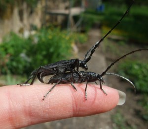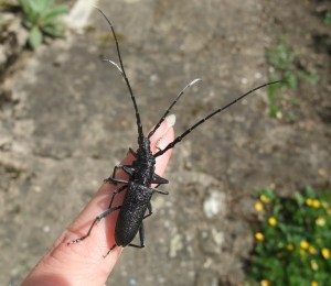 On Monday, near my hometown Thionville, I spotted those two beautiful Longhorn beetles who where actively mating on a stone wall. They were about 10 cm long, so not really the kind of insect you would be expecting in the French countryside!