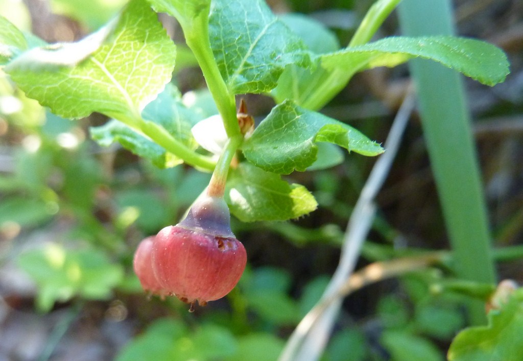 Beneath the tall Douglas Firs and the giant Redwoods lies a heath vegetation : the blooming Yellow Azalea, Rhododendron luteum (it’s actually an invasive coming from Eastern Europe, which has conquered British heathlands) and little red bells…yes, these are the flowers of the native bilberry/whortleberry (Vaccinium myrtillus). The delicious fruits are coming about a month later 😉