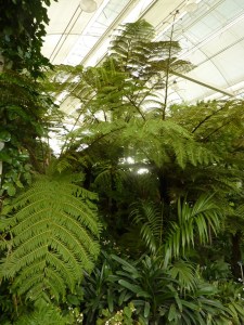 The moist temperate zone, kept at 8-12°C minimum with a high humidity recreates the conditions found in the cloud forest (high-altitude forests in tropical zones), or in temperate forests (UK, New Zealand…). There is a lovely waterfall which helps to maintain a high level of humidity. The typical vegetation of these forests includes huge tree ferns, as you can see on this pic :