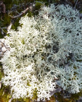 Where the ground is not covered by heather, it is filled with all sorts of mosses and lichens. The first picture shows the Reindeer Lichen (Cladonia portentosa), a heavily branched lichen which forms whitish tufts on the soil.