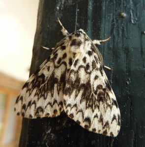 After a unsuccessful visit to this second site, we headed back for a lunch at Witley National Trust Visitor Centre…wildlife is never far! A striking moth, the Black Arches (Lymantria monacha), a woodland species feeding on oak.  Who said moths couldn’t be pretty? 🙂