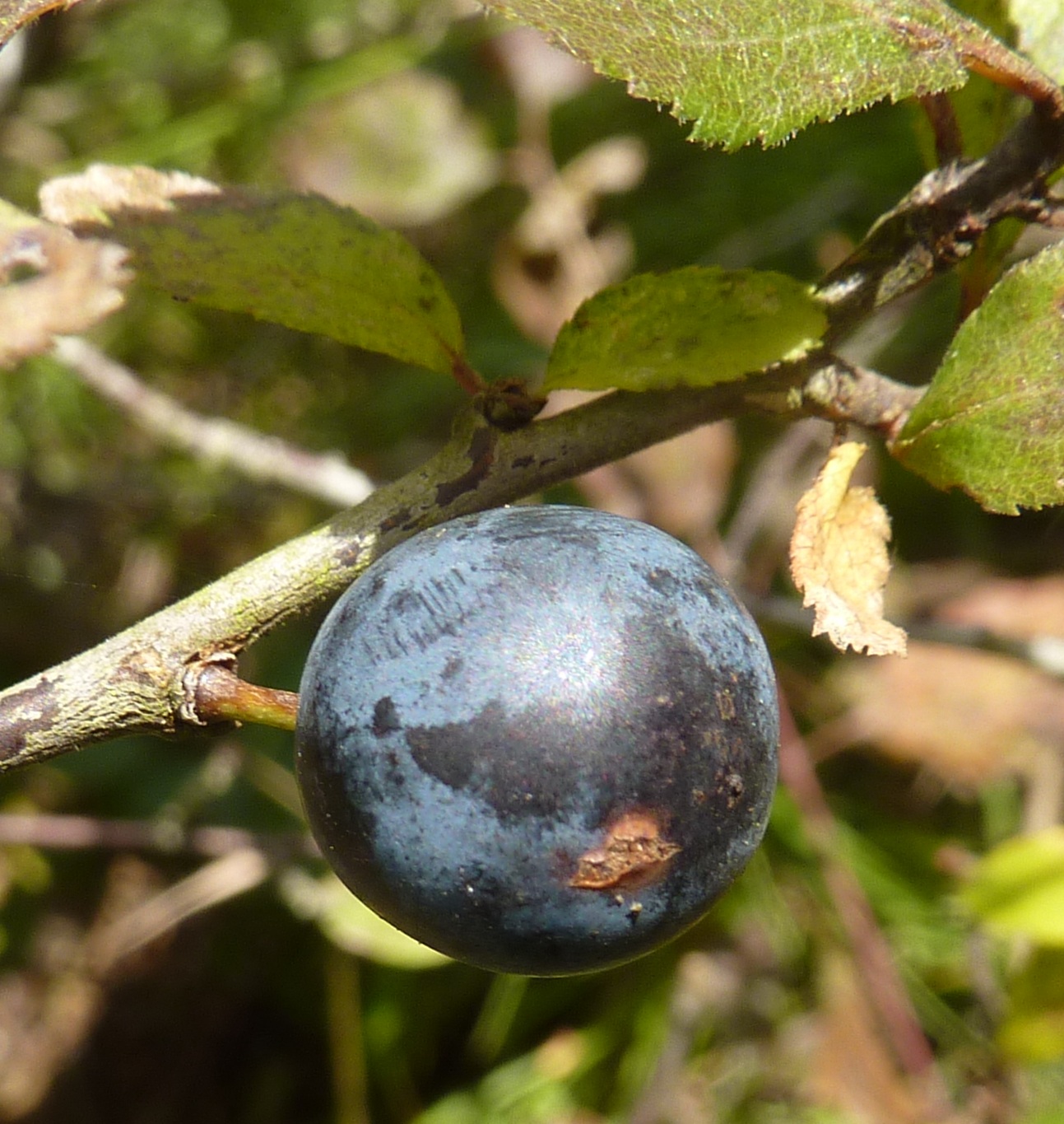 You might encounter similar looking berries, which do not have pruinosity. The ripe berries should be a bit darker, and more clustered than sloe. This is the common buckthorn (Rhamnus cathartica), whose mildly poisonous fruits were once used as purgative. Eating them won’t kill you, but you might regret it!