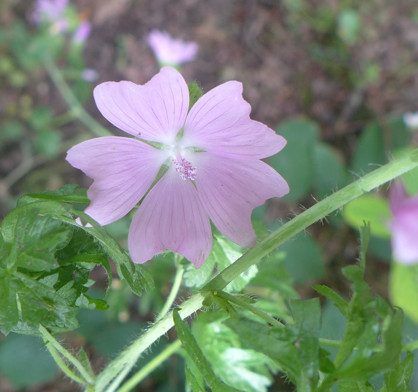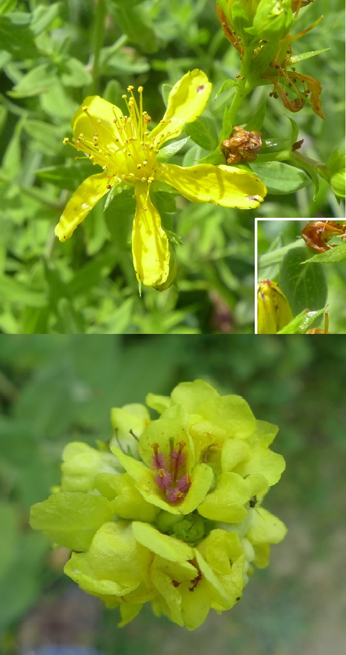 Under some small trees, I spot the locally abundant Rock Rose (Helianthemum nummularium). This is a member of the Cistaceae, a mainly Mediterranean plant family which loves dry and poor soils. The pink one is Malva moschata (Musk Mallow, as the flowers have a musky scent), a perennial often found in hedgerows or roadsides.