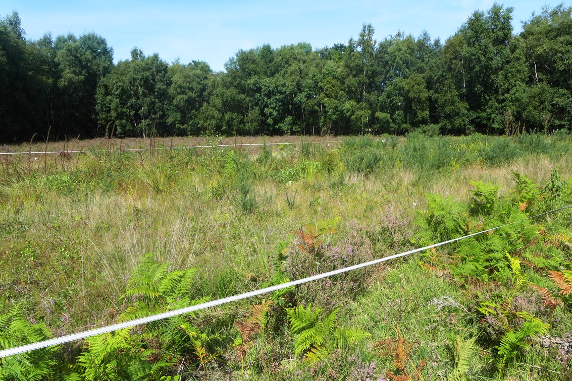 Recent management (tree felling, scrub clearing,…) in the past years has enabled the heather to recover. We noticed electric fences, which are used to let cattle graze trees and shrub seedlings :