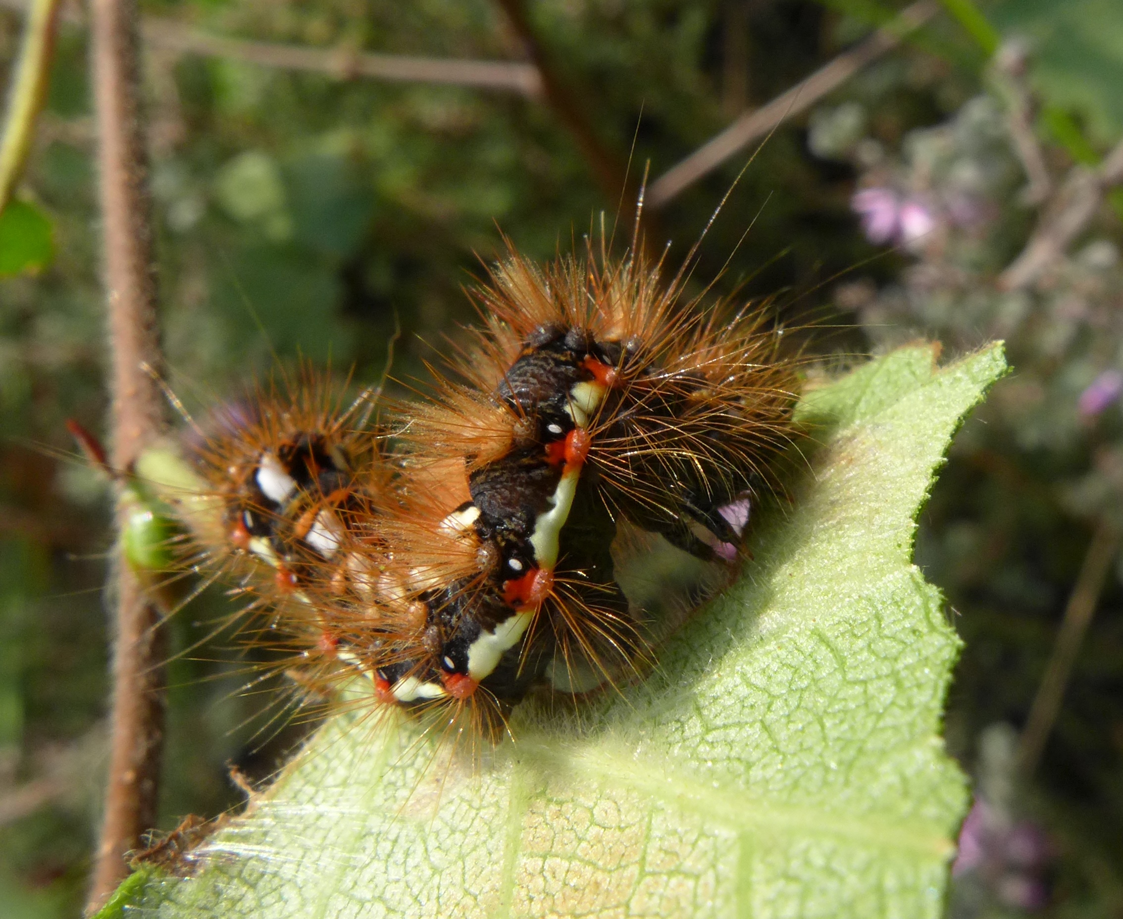 As you probably heard on the news, butterflies and moths emerged very late this season, which explains why caterpillars are still around in Autumn. Two spiky / hairy ones spotted on Smarts Heath : Acronicta rumicis (or Knot Grass, whose larva is much more colourful than the adult) and the Ruby Tiger (Phragmatobia fuliginosa, where it’s quite the reverse situation – the adult moth has bright red wings and body).