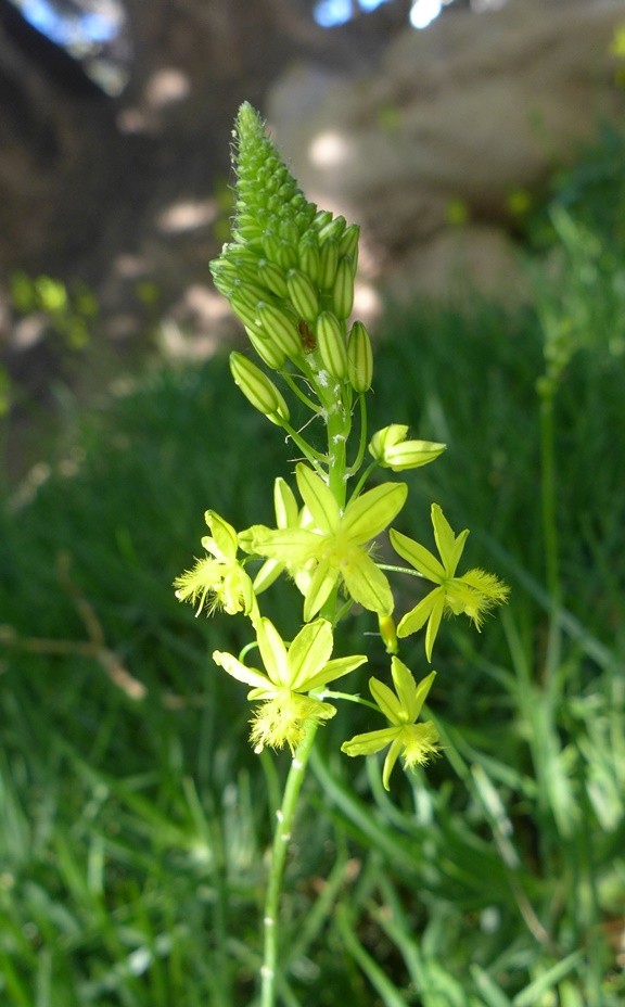 Even the lawn weeds have a certain exotic look (and exotic origin, as they are both from Southern Africa) – Bulbine frutescens with its fluffy stamens, and the striking Freesia laxa:
