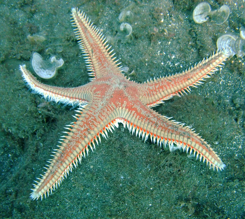 Of course, being on an island, we also had the opportunity to go diving. There are no postcard-perfect beaches on Madeira. Instead, it is just rocks and boulders gently sloping down to the sea. This is an ideal playground for animals such as starfishes. My favourites of the trip are the impressive Astropecten aranciacus (which can reach a whopping 55 cm!) and the spiny starfish (Marthasterias glacialis):