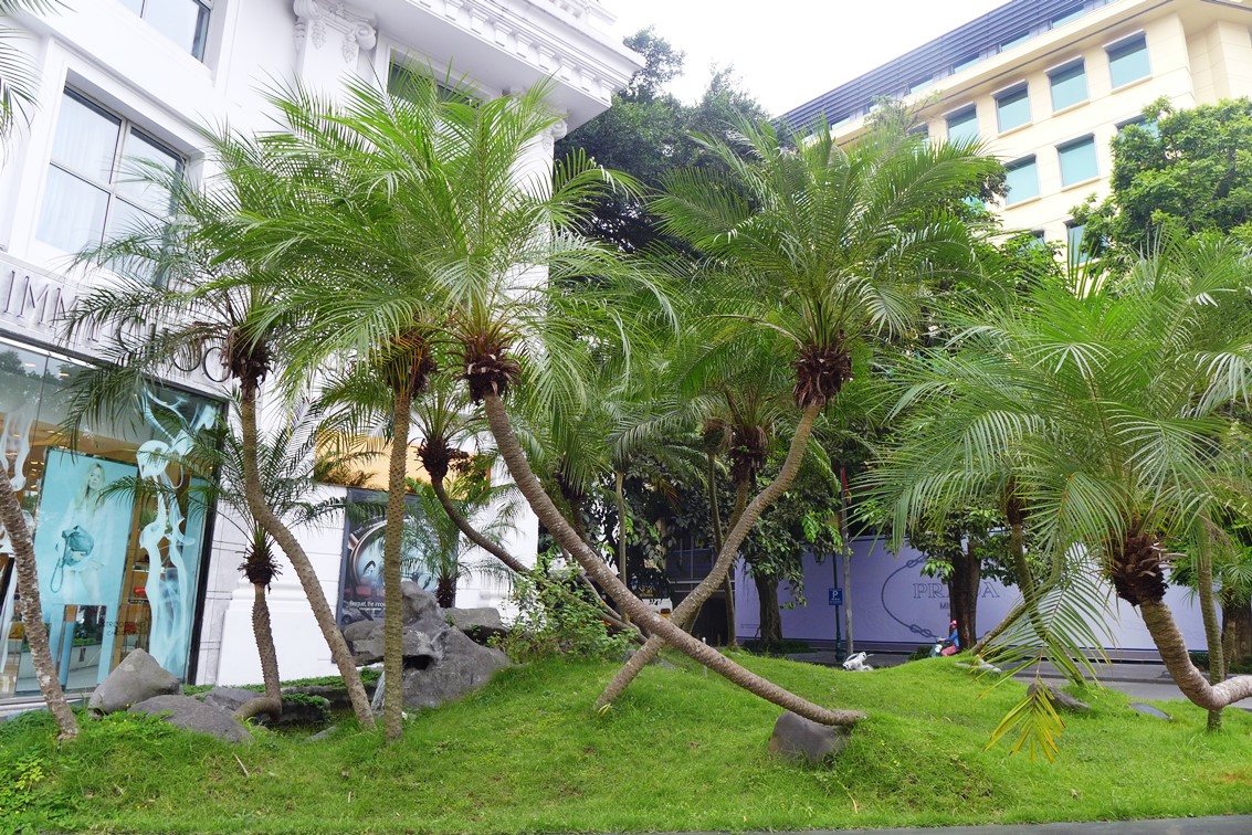 Street plantings in Hanoi are a feast for the eye. Posh shops use niwaki conifers and delicate palms such as the native Phoenix roebelenii:
