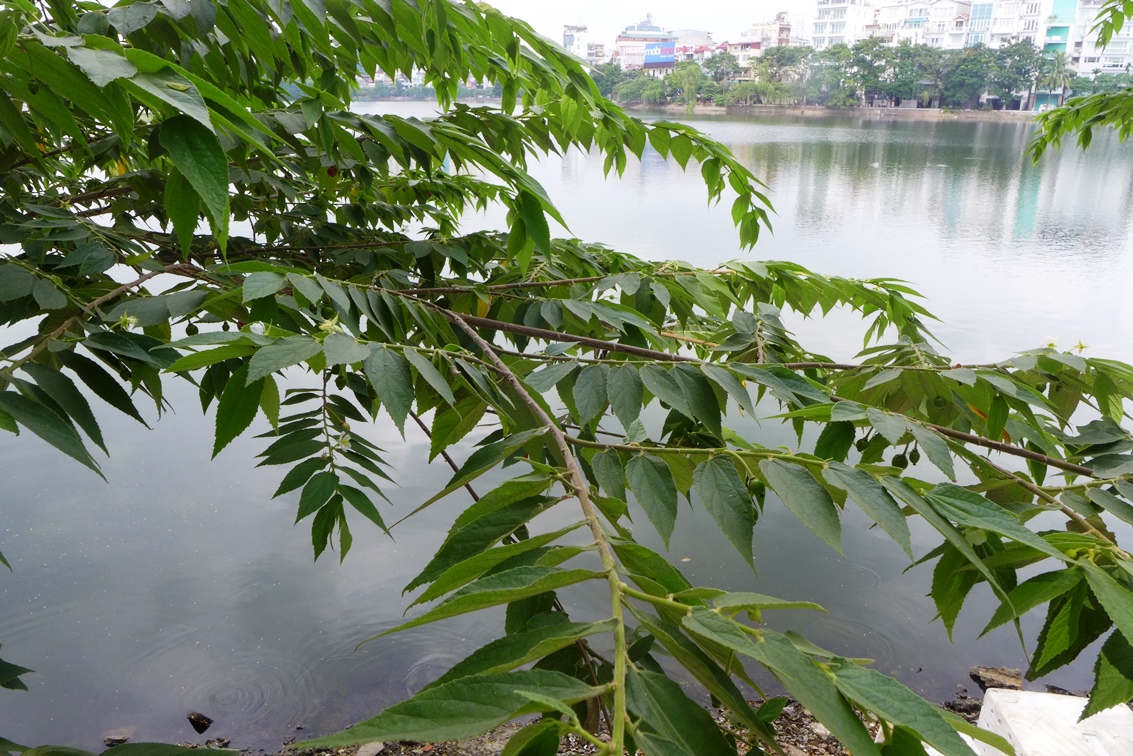 Apart from the traditional Flame trees, the banks of the lake are occupied by smaller plant such as the Panama Berry (Muntingia calabura), a South American tree which has become naturalised in parts of Asia: