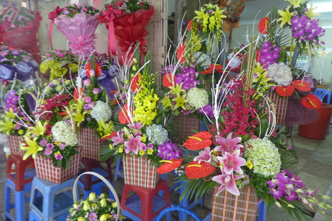 In addition to colourful orchids and anthuriums, florists also appeared to be selling much more temperate flowers such as chrysanthemums, pinks (Dianthus) and hydrangeas. Weird!