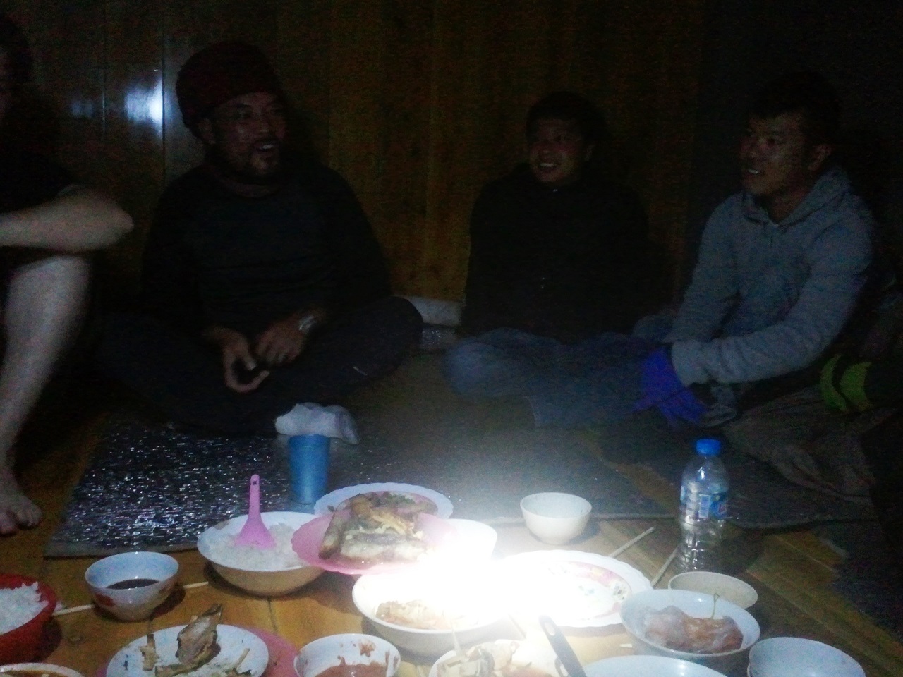 We reach the overnight camp just before sunset, and discover our room with a view. Most of the evening is spent around a hearty dinner with Vietnamese tourists, singing traditional songs and drinking garlic wine (ouch).