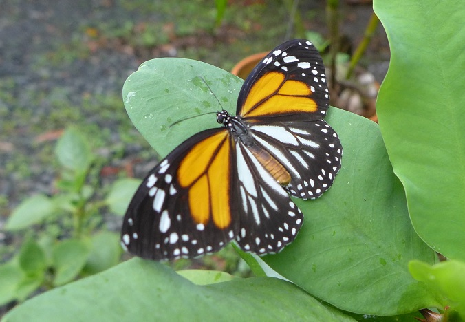 A nice surprise landed on a neighbouring leaf as I was trying to take flower pictures: the white tiger Danaus melanippus, a large butterfly, cousin of the most iconic North American butterfly, the monarch.