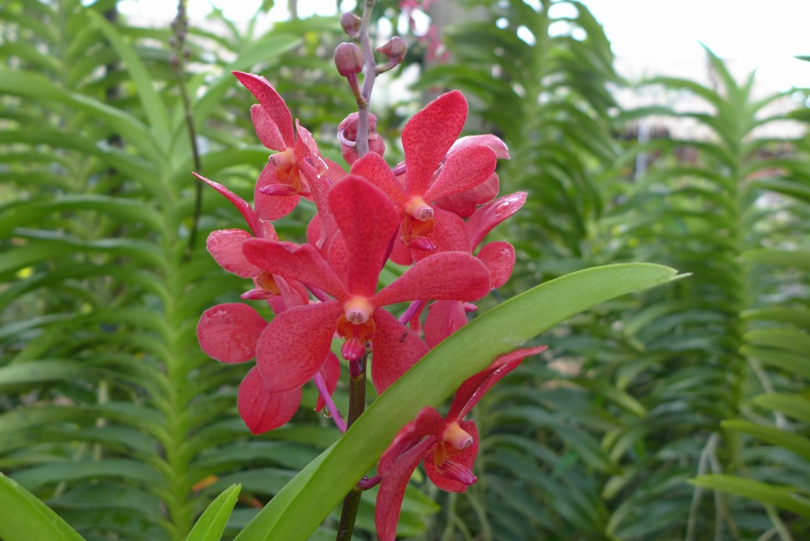 Closer to houses, orchids are abundant, mainly colourful Vanda and Dendrobium hybrids.