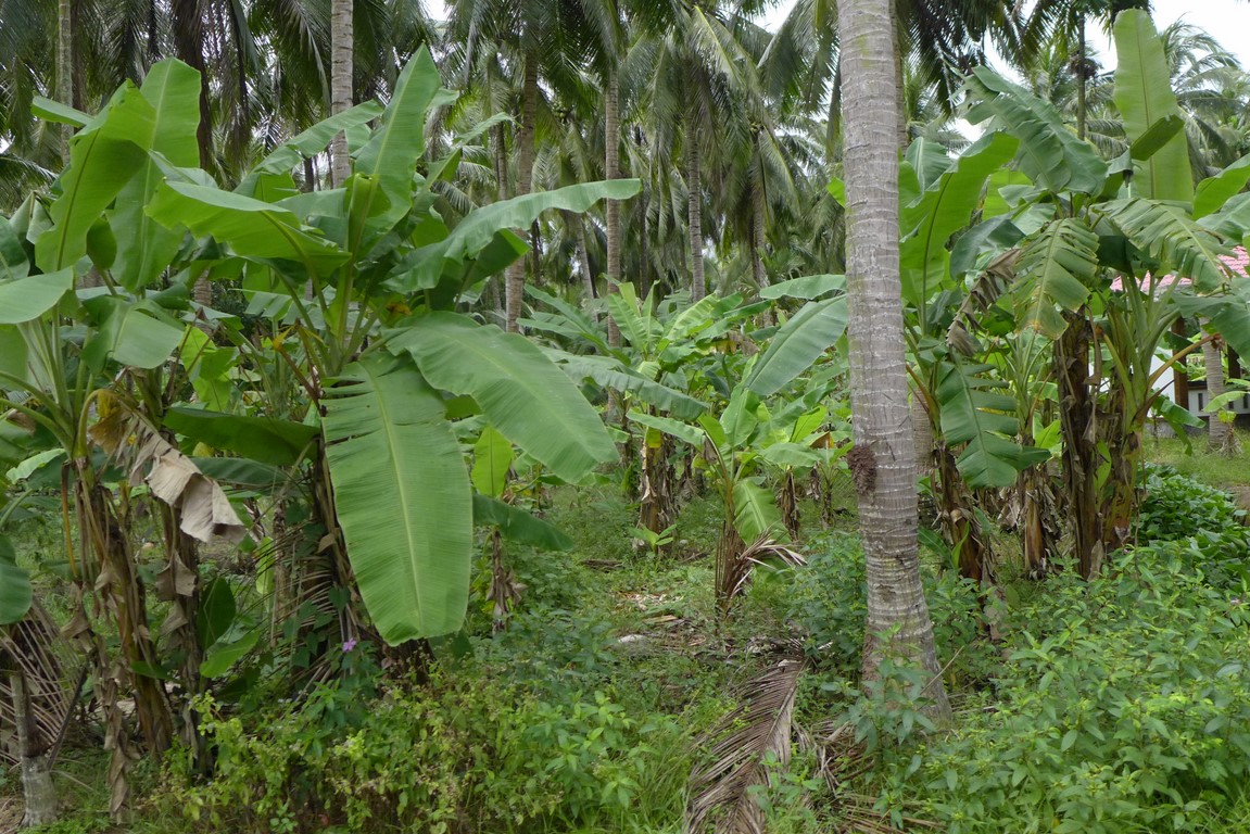 We embark on little trucks for a tour of the coconut palms and banana plantations. A bumpy tour I should say – the area is so wet that roads have disappeared in places.