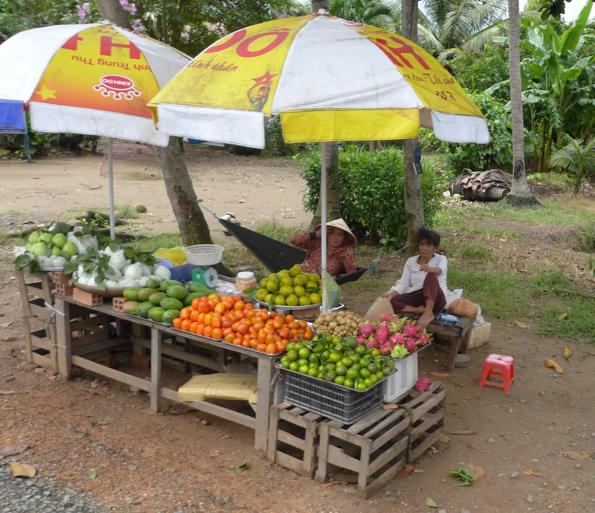 The roads are lined with street merchants selling fruits, herbs or fibres: