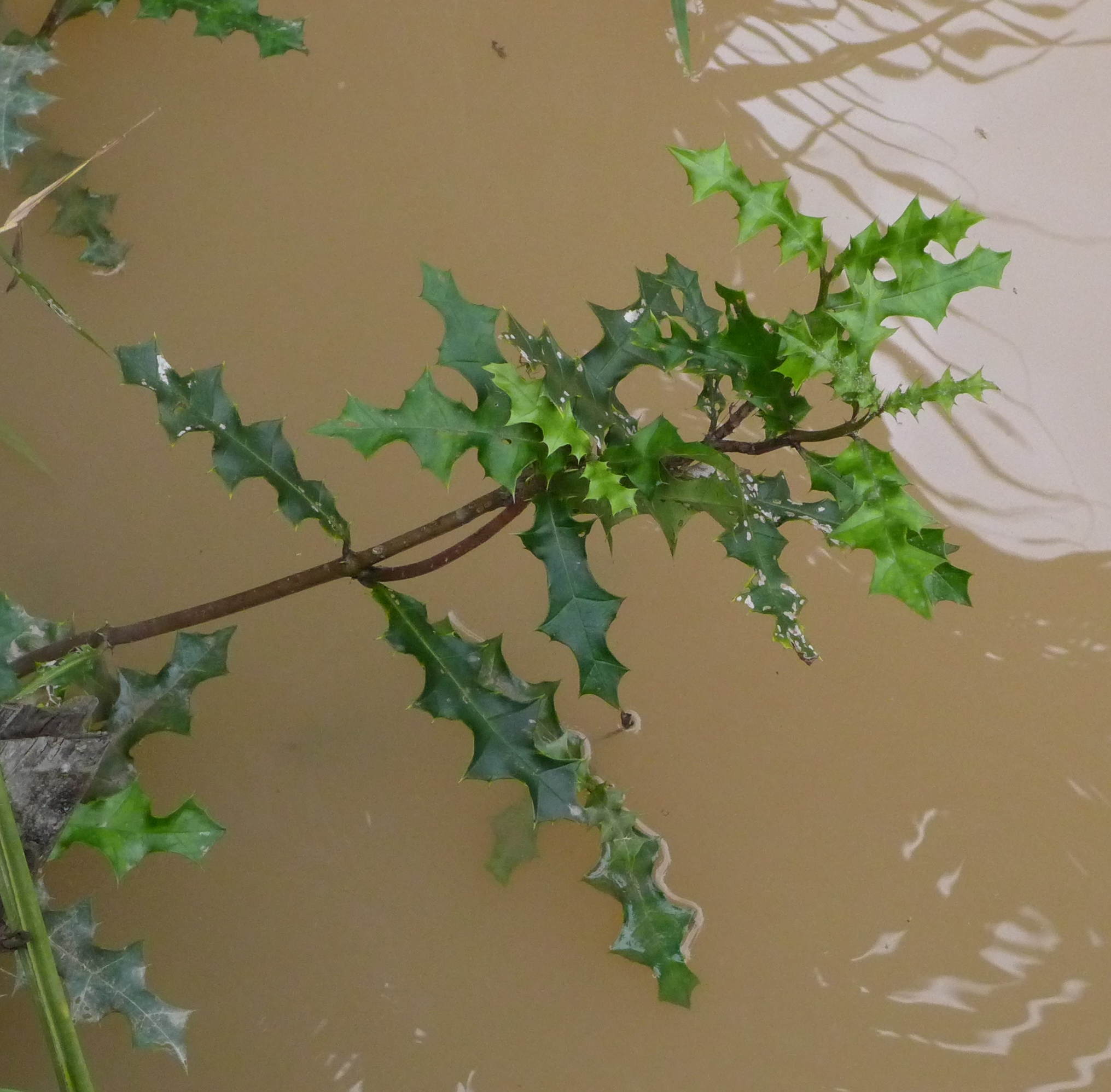 On the banks, it is very easy to spot the showy flowers of the tropical bindweed Argyreia nervosa. I was more puzzled by the plant on the right, which looked a lot like a holly. It is in fact called the sea holly, but has nothing to do botanically with the real holly (Ilex sp.) as this is Acanthus ebracteatus.