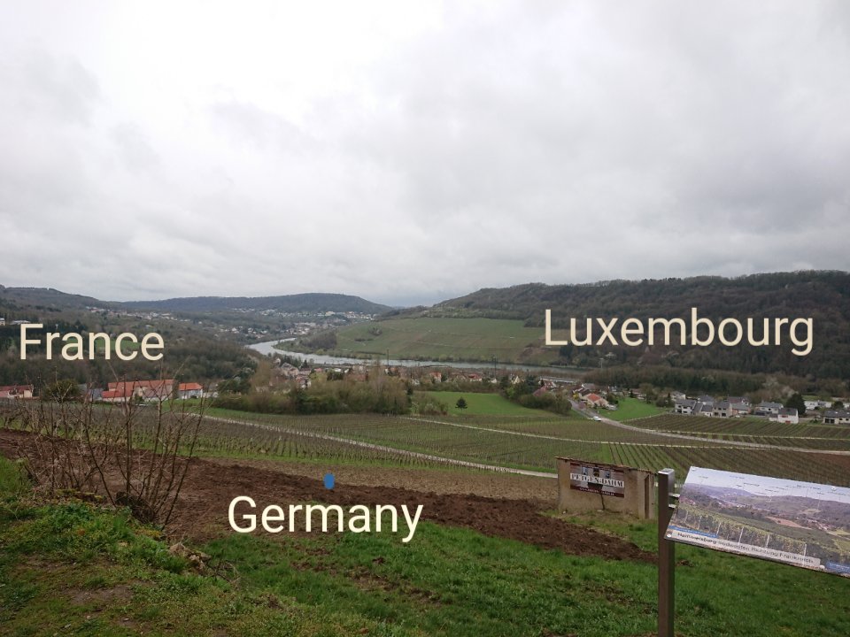Home – somewhere around there. To the right is the strangely famous village of Schengen.