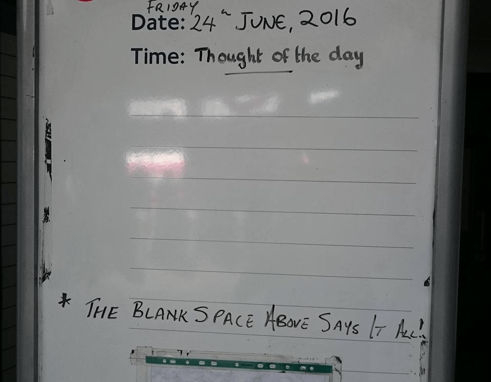 Tooting Broadway station – “Thought of the day” sign, 24th June 2016